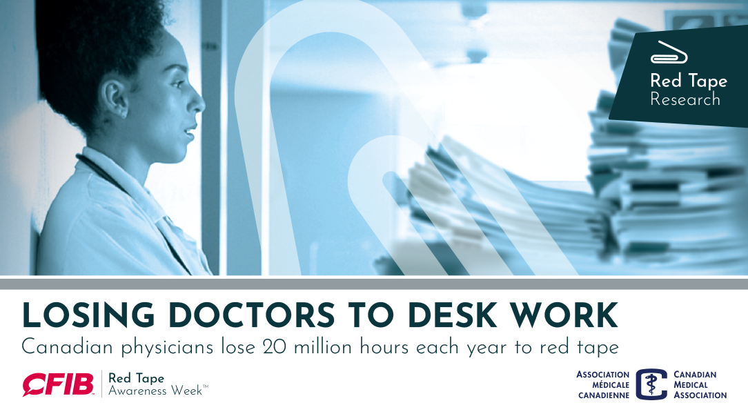 Canada’s health care system is stretched thin and unnecessary administrative work is making it worse. Building on CFIB's previous reports, this new joint report from CFIB and the Canadian Medical Association (CMA) provides the most comprehensive look yet at how administrative burdens are affecting doctors and the health care system.