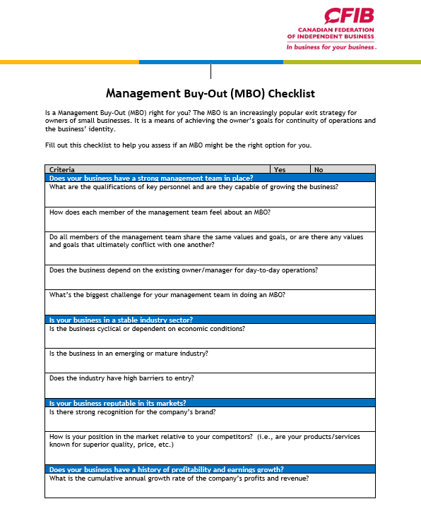 Management Buy-Out Checklist