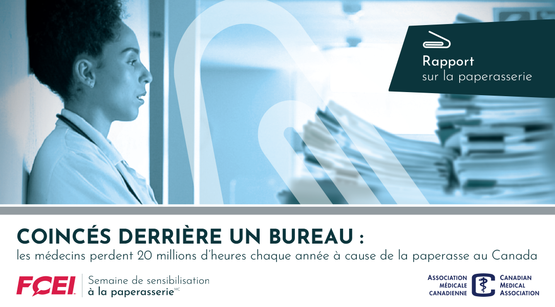 Association médicale canadienne (AMC) et Fédération canadienne de l’entreprise indépendante (FCEI). Coincés derrière un bureau : les médecins perdent 20 millions d’heures chaque année à cause de la paperasse au Canada. Ottawa : l’Association; janvier 2026. https://digitallibrary.cma.ca/link/infotheque1478
